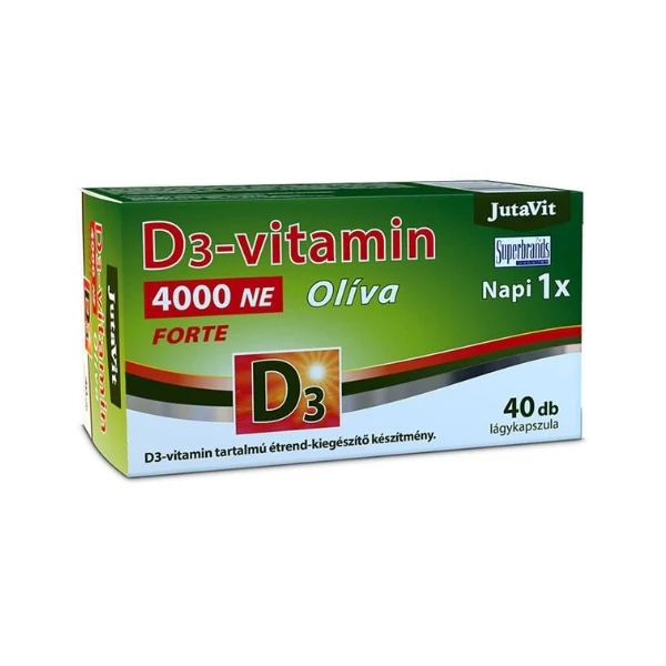 - A JutaVit D3-vitamin 4000 NE Forte Olíva, a D-vitamint extra szűz olívaolajban oldott formában tartalmazza.
